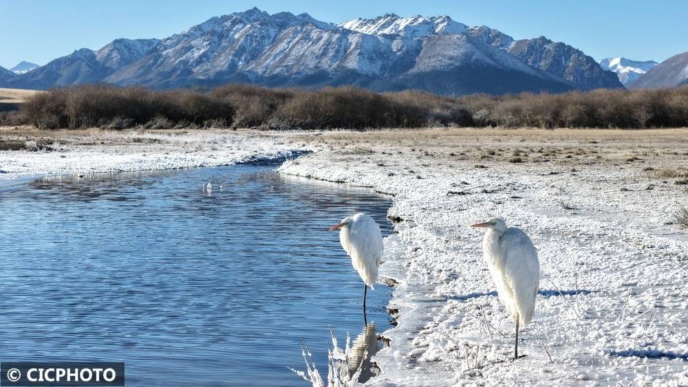 ↑2025年11月18日在甘肃省张掖市山丹县山丹马场鸾鸟湖畔拍摄的景色。CICPHOTO/王超 摄