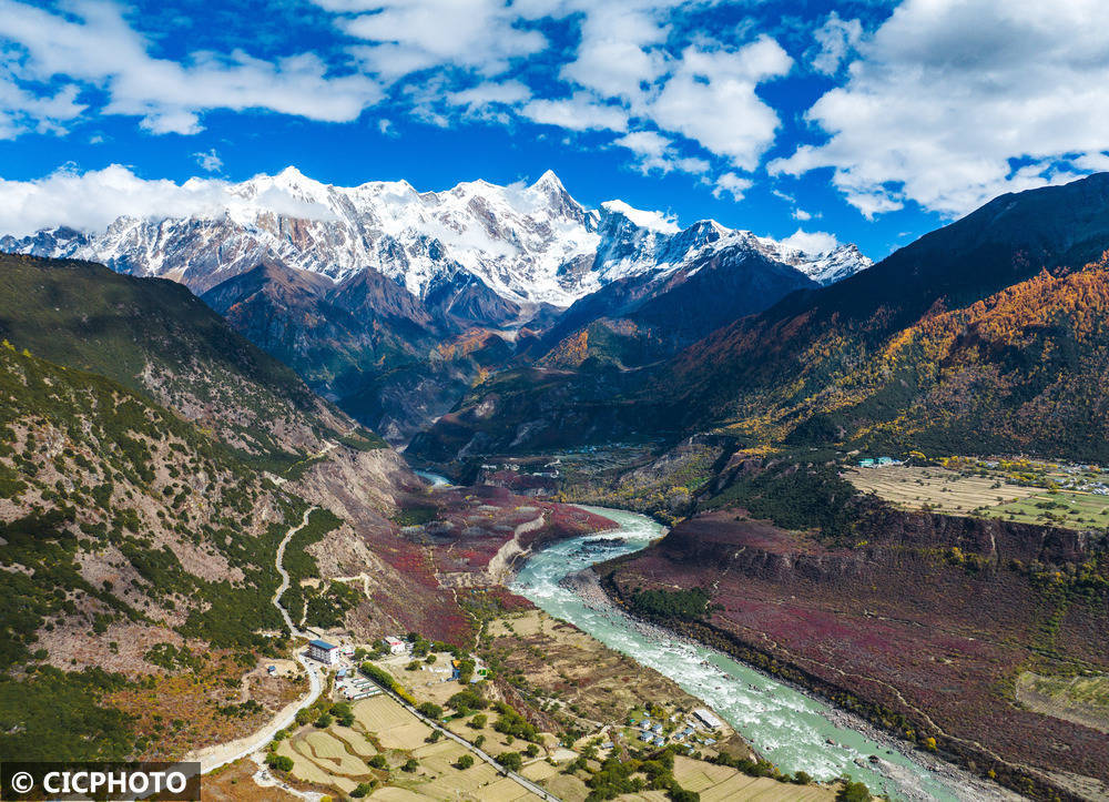↑2025年11月7日在西藏昌都市八宿县然乌镇拍摄的景色。(无人机照片)CICPHOTO/黎豪图 摄