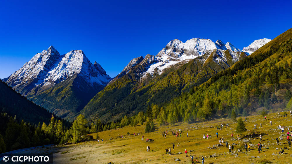 ↑2025年10月22日,游客在四川省阿坝藏族羌族自治州小金县四姑娘山双桥沟景区游玩。CICPHOTO/田文国 摄编辑:马兰