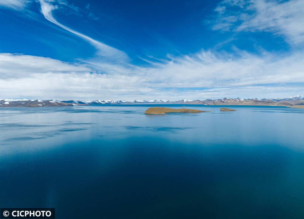 ↑2025年10月27日在西藏山南市浪卡子县普莫雍错湖边拍摄的景色。(无人机照片)CICPHOTO/黎豪图 摄