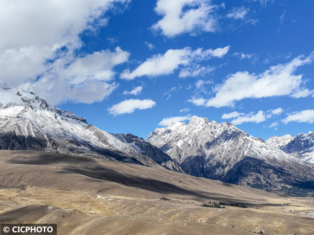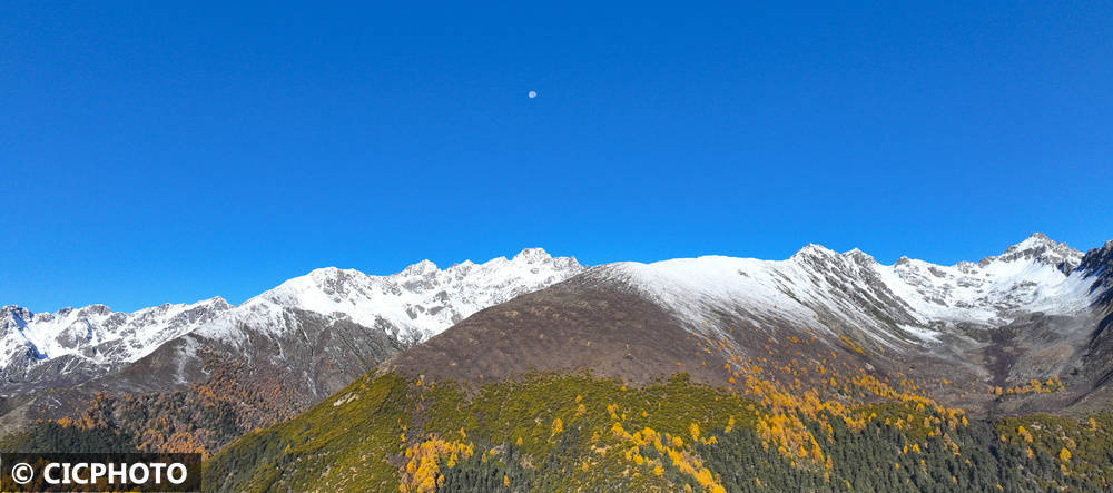 ↑2025年11月7日在位于四川省甘孜藏族自治州的稻城亚丁景区拍摄的景色。(无人机照片)CICPHOTO/黎豪图 摄