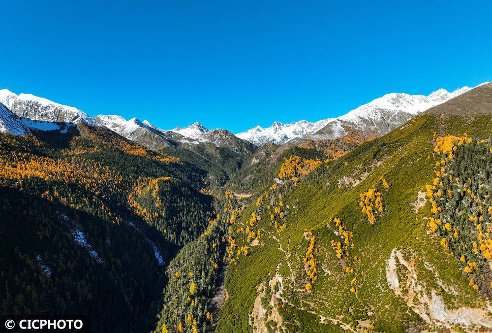 ↑2025年11月5日在西藏昌都市八宿县然乌镇拍摄的景色。(无人机照片)CICPHOTO/何华文 摄
