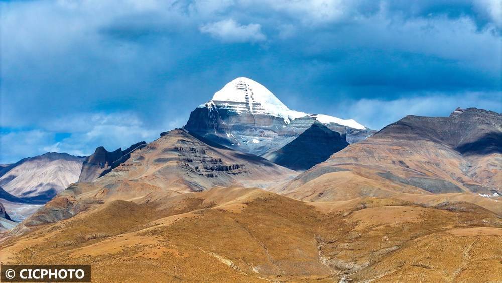 ↑2025年10月23日在西藏阿里地区普兰县拍摄的冈仁波齐峰。(无人机照片)CICPHOTO/王正 摄